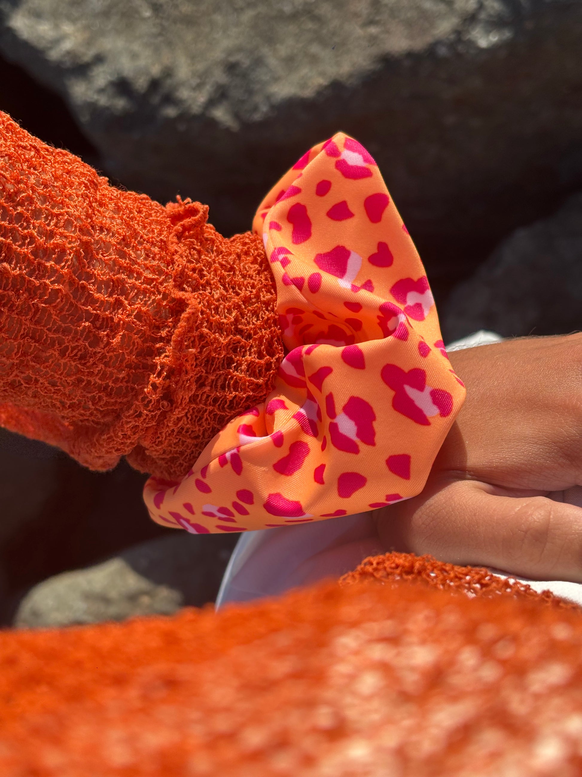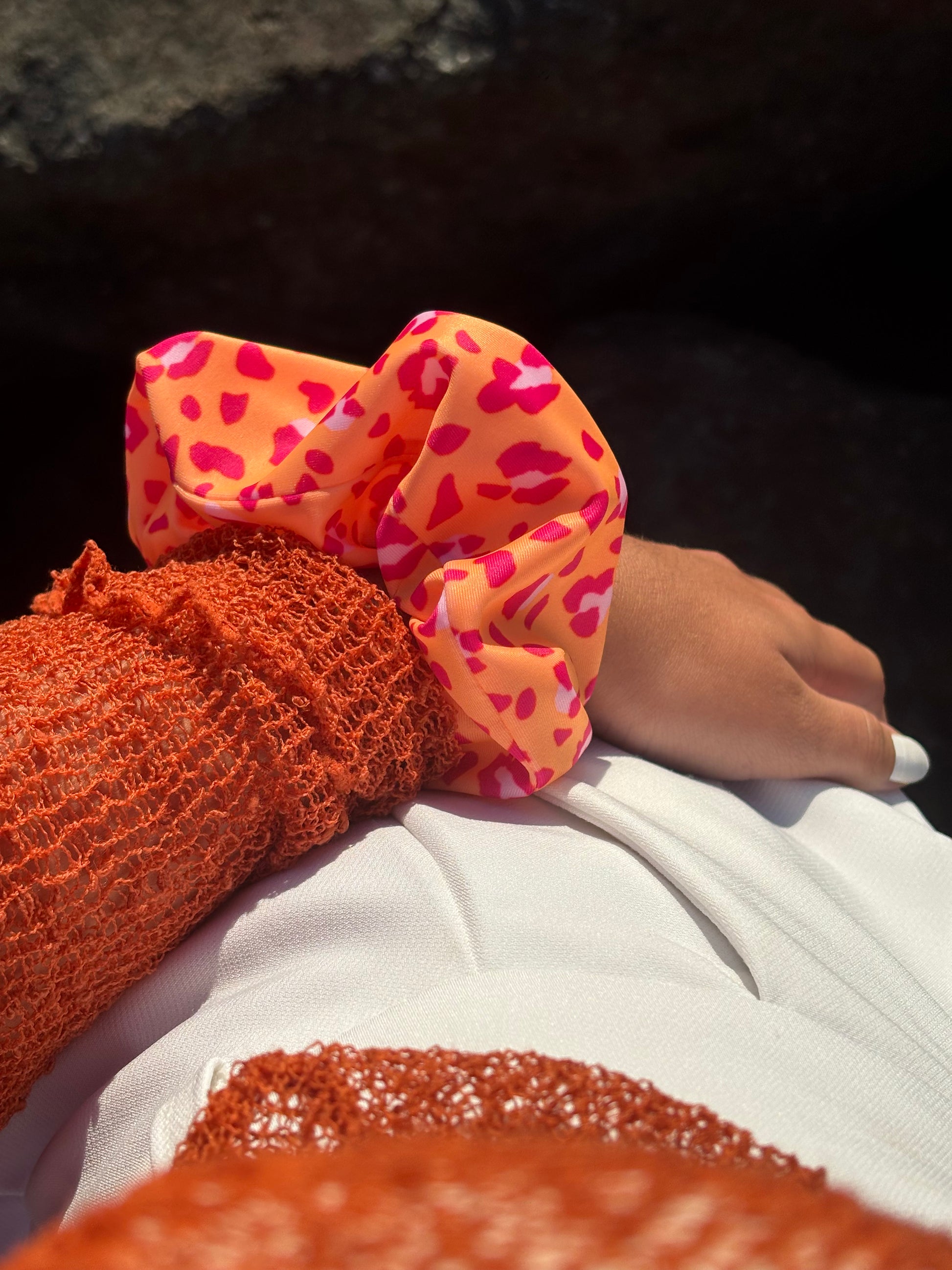 Le Chouchou maillot de bain Sophie se démarque par son design éclatant : un tissu orange et rose fluo aux motifs léopard. Confectionné dans une matière imperméable inspirée du maillot de bain, il reste impeccable même après vos baignades, que ce soit à la piscine ou à la plage.
