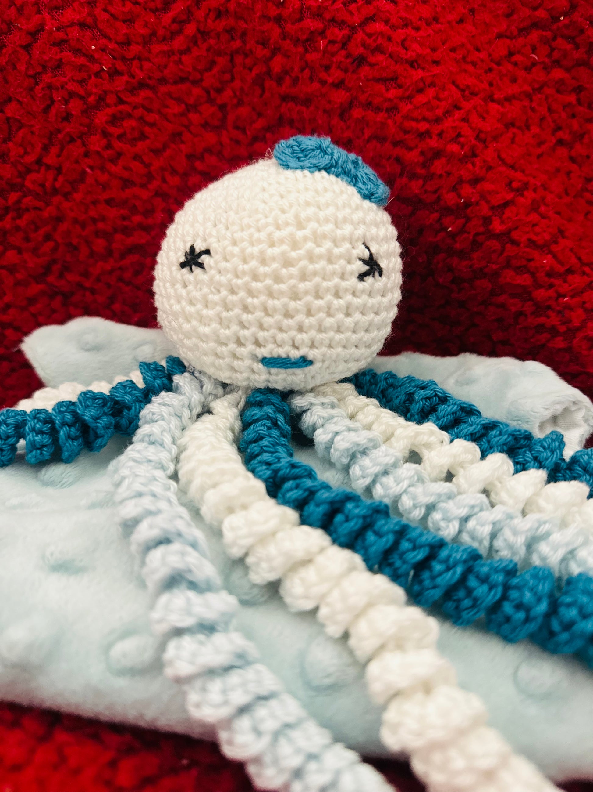 Le Doudou pieuvre Lili enveloppe votre bébé de douceur grâce à sa tête en crochet finement travaillée, ses tentacules souples faciles à attraper et son carré ultra-moelleux. Sa texture variée stimule en douceur les sens et offre un repère affectif réconfortant.