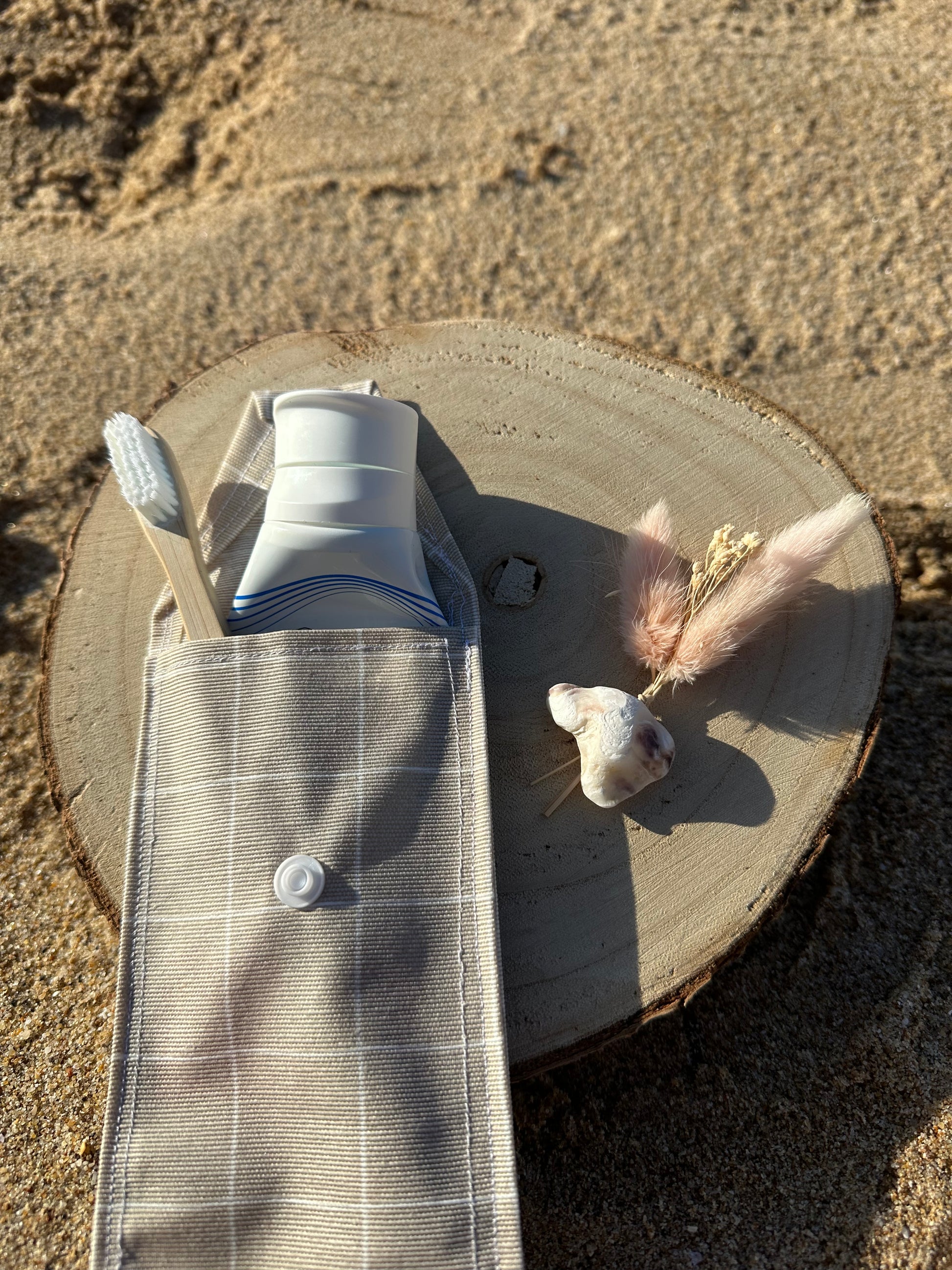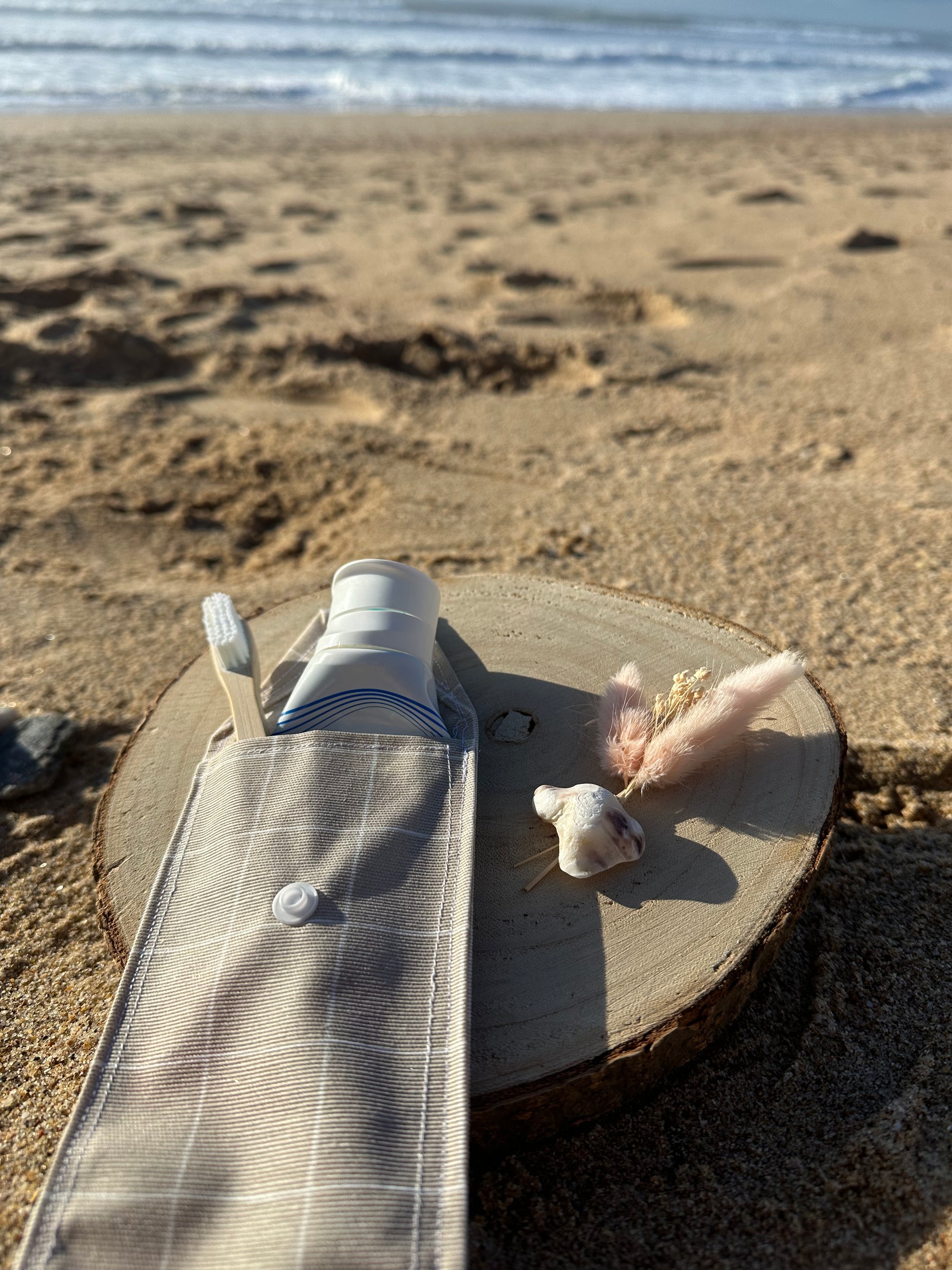 Étui à brosse à dents Elio : un accessoire pratique, artisanal et durable pour transporter brosse à dents et dentifrice en toute simplicité.